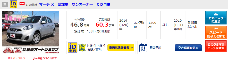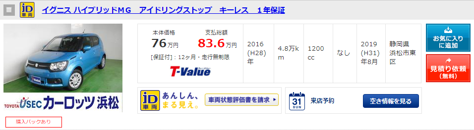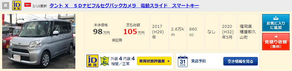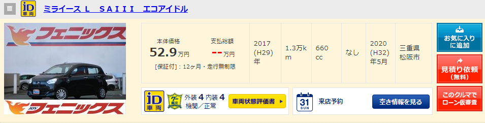 新車販売台数が非常に多い車種であるため、現行モデルであっても100万円台で購入できますが、2代目モデルで我慢すれば、 非常に程度の良いコスパ抜群の中古車が、総額70万円を切る価格で多数販売されています。