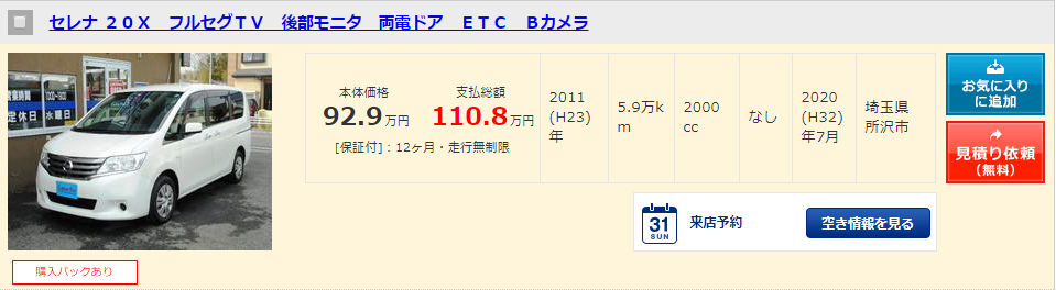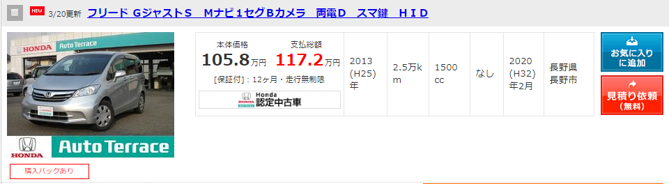 2010年の販売開始なので、8~9年落ち以前の車体になりますが、長く乗れそうな走行距離の出物が総額12万円以内でバンバン出ているので、「広くてコスパもいいミニバン」をお探しなら、ぜひ狙ってみてください。