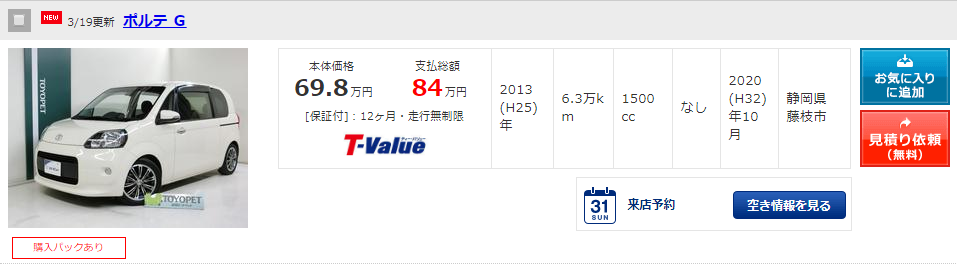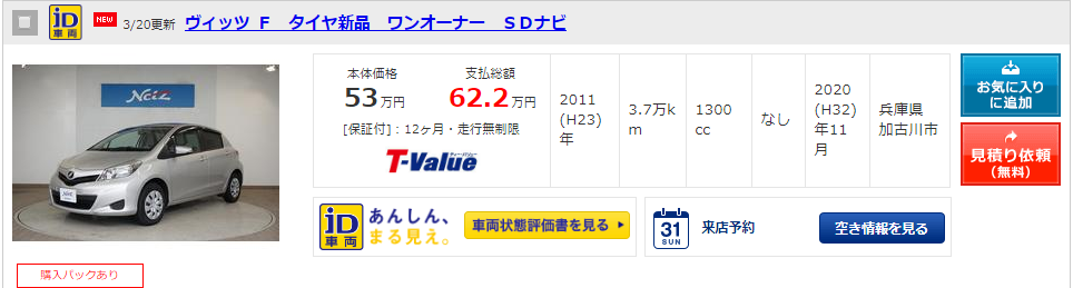 どこの中古車さんに行ってもヴィッツは見つかりますが、低価格かつ程度の良いヴィッツをお求めなら、やはりトヨタ系中古車店に狙いを絞ったほうが効率的です。
