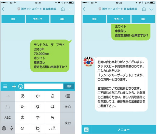 また、人気SNSであるLINEでこのグッドスピードを友達登録し、カンタンな車両情報を伝えることで査定が受けられるサービスも大人気。